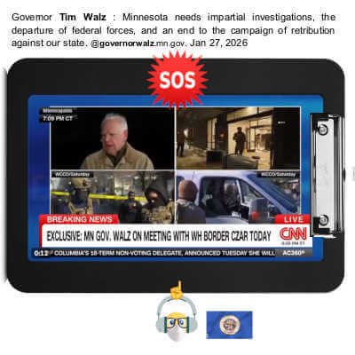 !–Governor Tim Walz : 📹Minnesota needs impartial investigations, the departure of federal forces, and an end to the campaign of retribution against our state. 1/27/26