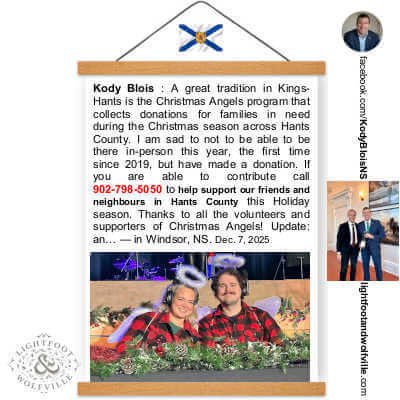 - facebook .com/photo/?fbid=1258178336134024 (‘ A great tradition in Kings-Hants is the Christmas Angels program that collects donations for families in need during the Christmas season across Hants County. I am sad to not to be able to be there in-person this year, the first time since 2019, but have made a donation. If you are able to contribute call ☎️902-798-5050 to help support our friends and neighbours in Hants County this Holiday season… ‘)